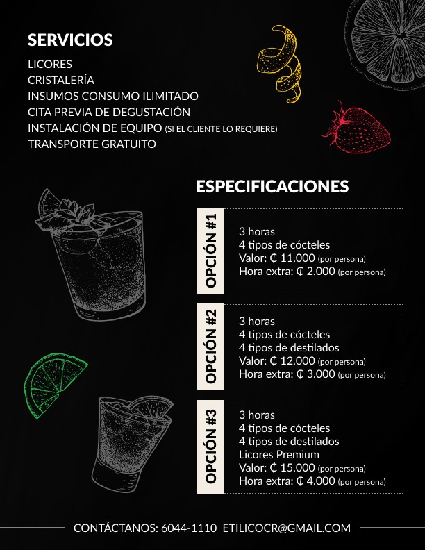 *Los precios están basados en eventos de 20 personas en adelante